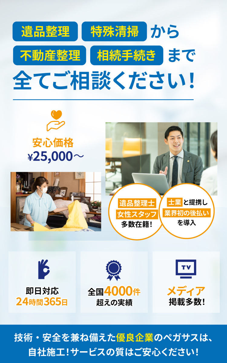 弊社では厚生労働省推奨の作業方法を取り入れており、その取り組みについては、各種メディアでも多く取り上げて頂いております。 安心してお問合せください。 (掲載実績:産経新聞、ワイド!スクランブル、毎日新聞、Abema的ニュースショー 他多数)